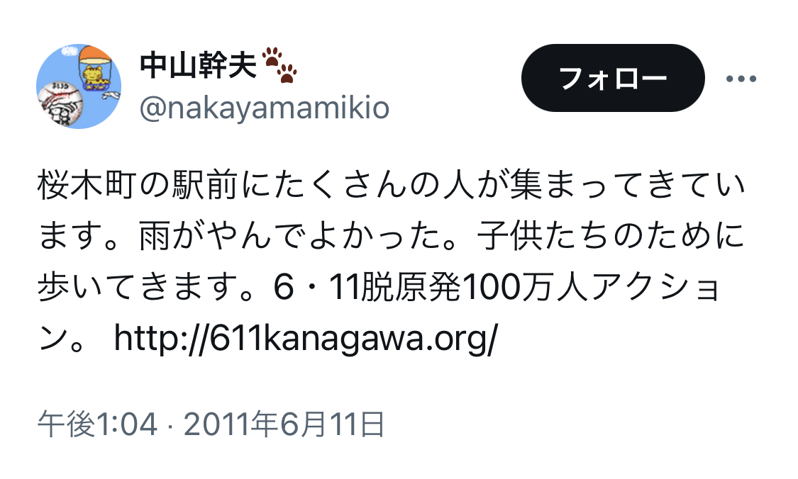 - ネットで情報発信を続けながら、2011.6 脱原発デモ に家族で参加。
